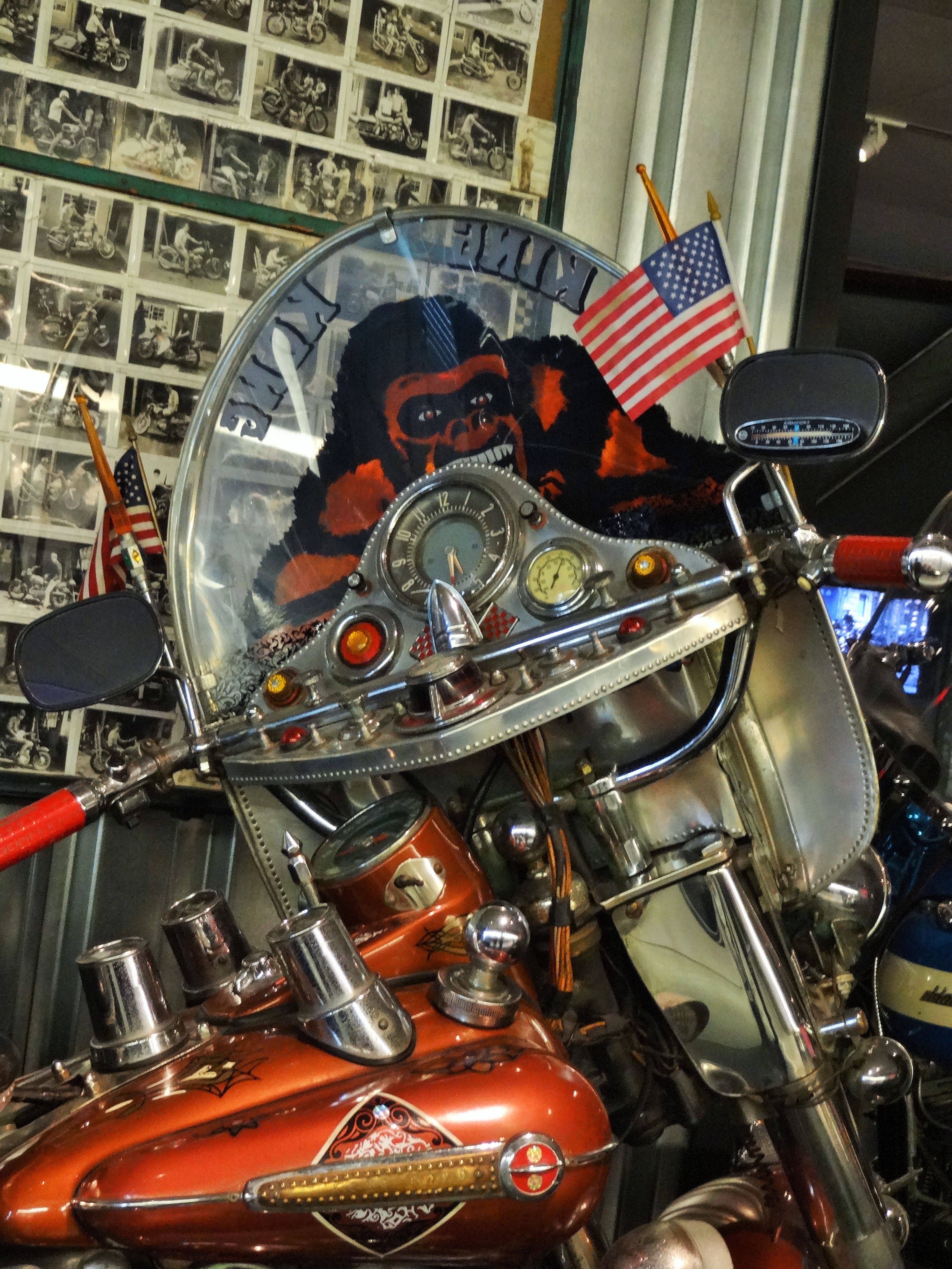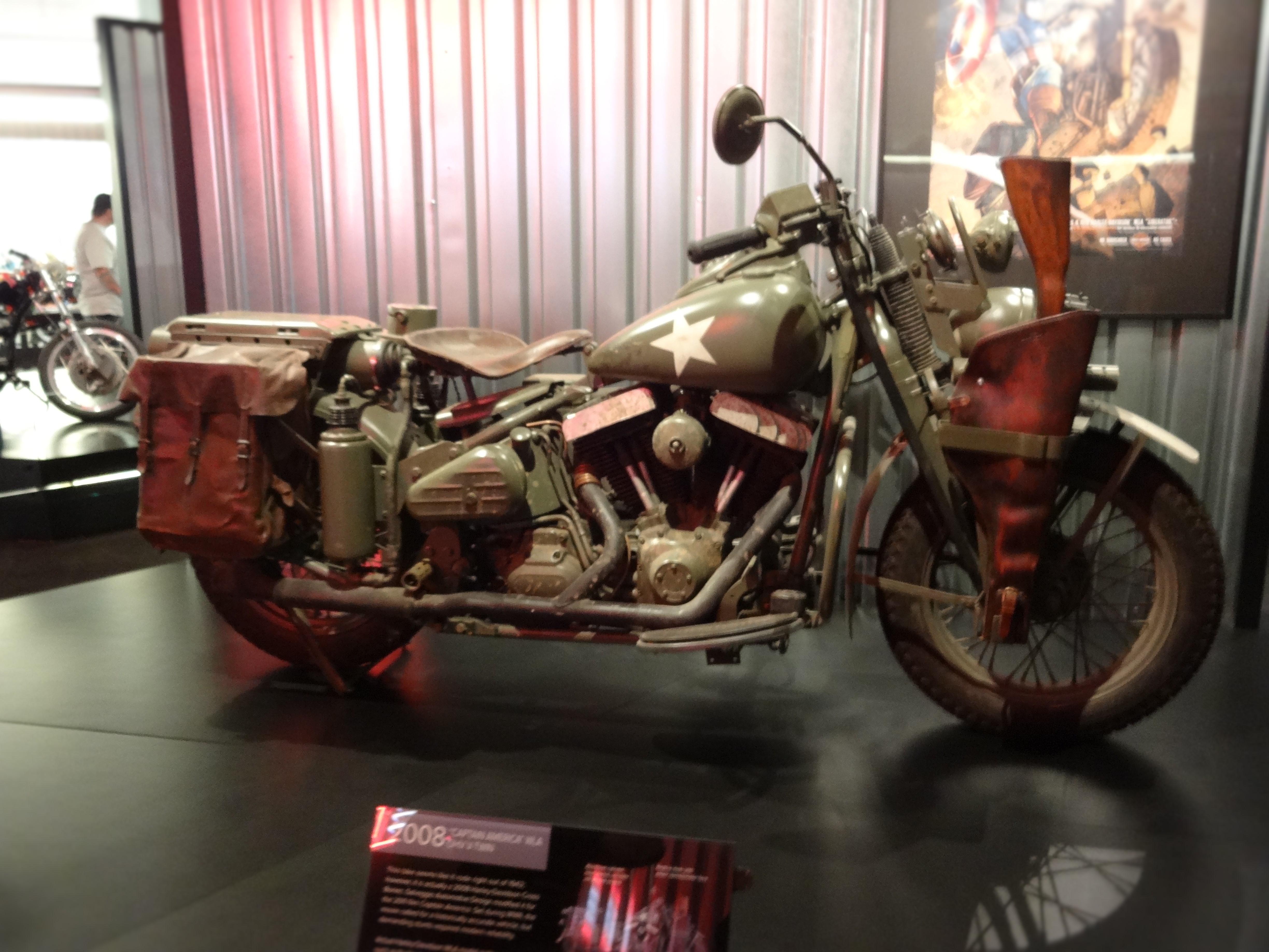 I have never been this far into Wisconsin before. I never really had a reason to. My boyfriend lives about a half-hour from the city and so we decided to make a day trip. The first stop we made was at the Harley Davidson motorcycle museum. This museum was very interesting and really cool! The first part of the museum shows some of the earliest motorcycles known to exist. It shows gradually how the Harley brand and the motorcycles have changed throughout the decades. The second part of the museum shows motorcycles in pop culture, racing motorcycles, and the newest motorcycles coming out in 2015. My favorite part of the exhibit was the Captain America motorcycle! In Captain America: First Avenger, Steve Rogers is riding on this retro military motorcycle. They had the motorcycle at this museum. I thought it was amazing to look at. I also loved the other type of motorcycles that were donated to the museum. This included a rhinestone motorcycle with red, white, and blue rhinestones.
