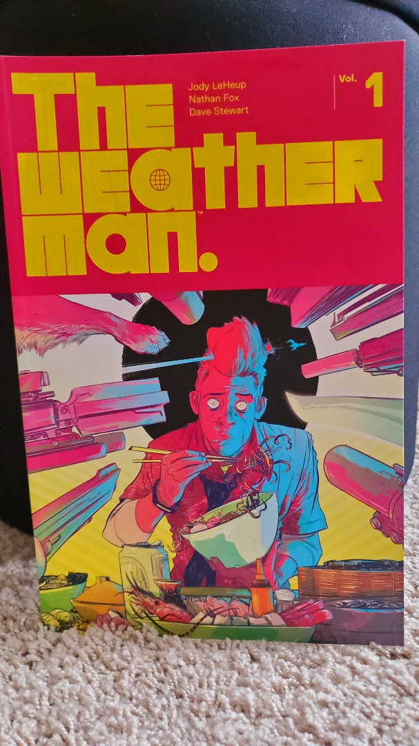 I picked up the first volume of The Weatherman at Comix Experience in San Francisco. Nathan Bright is a TV reporter on Mars. He’s successful, he loves his job, and is supported by his girlfriend and dog. Unfortunately, his success doesn’t last long when Nathan is accused of a terrorist attack against planet Earth. Nathan cannot remember what happened, yet he’s being chased across the entire galaxy to be punished for a crime he couldn’t possibly commit.