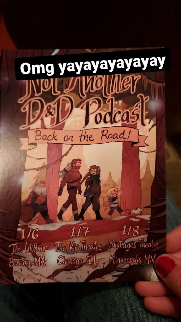 The show started at 7 PM, and the show ended close to 9 PM. I thought that was perfect because sometimes D&D podcast episodes can get long. It’s rare that I listen to one NADDPOD episode in one sitting, so I’m glad that their show wasn’t longer than two hours.