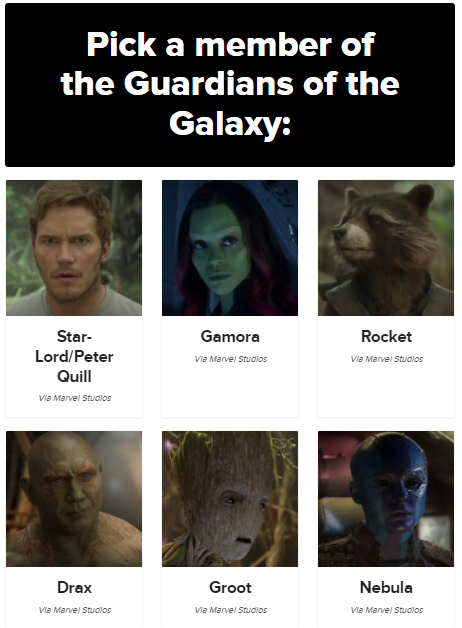 This question was a lot tougher. I think each member of the Guardians serves a purpose in the group. From a humor standpoint, I like Drax. From a character growth standpoint, I would pick Nebula. I think I’m going to pick Groot as he is sweet and has the backs of the other Guardians.