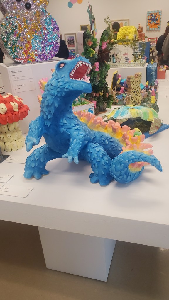 After completing the exhibit, you can vote for your favorite submission. The winner wins the “Golden Peep” I voted for the Prince-inspired art while my brother-in-law voted for the Godzilla-like dragon. This exhibit is always a blast and I can’t wait to go again next year.
