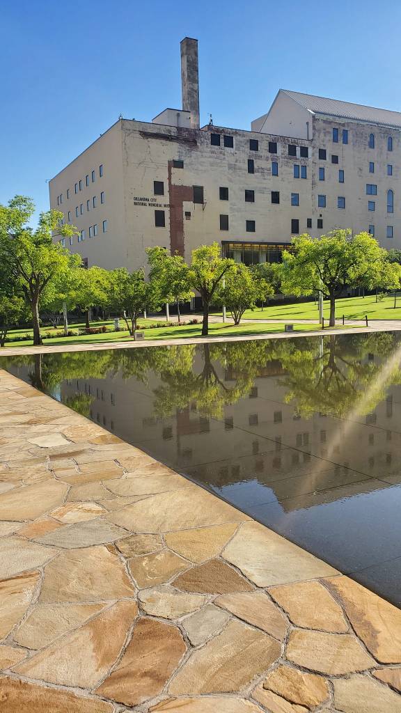 Besides taking pictures at Wheeler Ferris Wheel, we walked around The Oklahoma City National Memorial. For those who are unfamiliar, on April 19th, 1995 a bomb went off at the Alfred P. Murrah Federal Building in OKC. I wasn’t even a year old when this happened. I’m learning as an adult what happened that day and how horrific this event was. The memorial was beautifully crafted, but haunting. There were several chair sculptures that represented everyone who died that day. Unfortunately, we didn’t have time to go through the museum, but if I’m ever back to OKC, I will make this a priority.