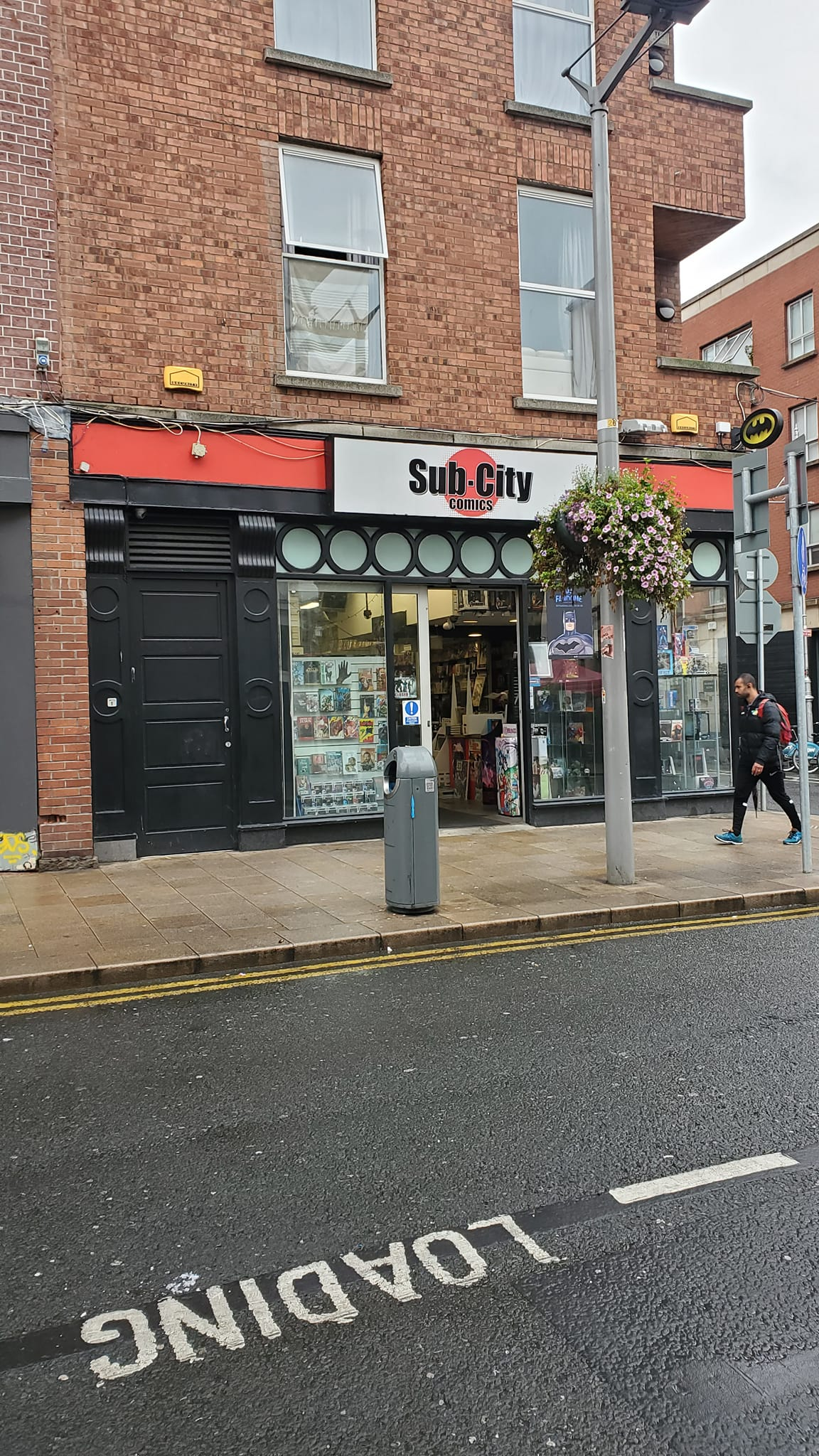 Image is of a comic book store. The sign says "Sub-City Comics" with a red circle that's filled in the background.