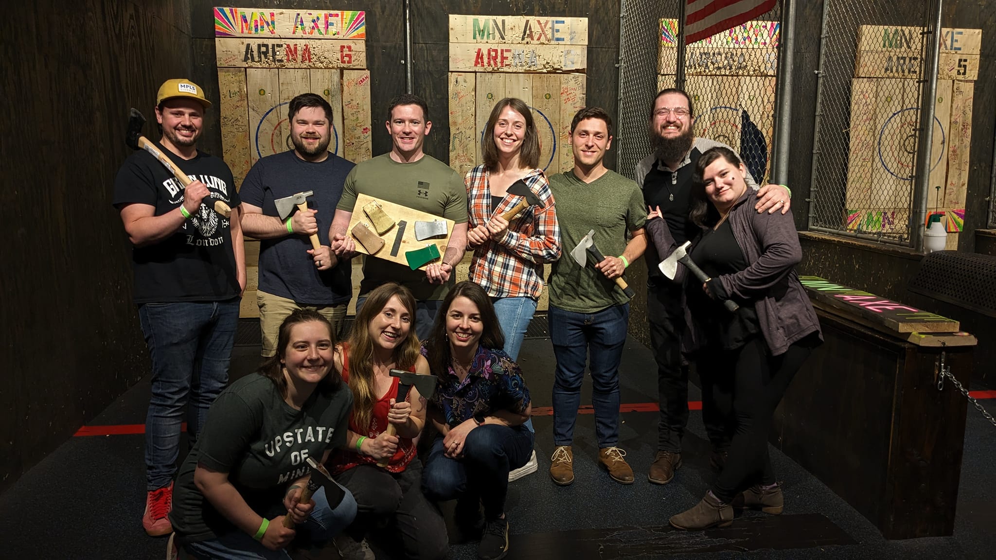 For my husband’s 30th birthday, he wanted to get a group of friends together to go Axe-Throwing. There’s an Axe-Throwing place near our house, so we all got together to throw axes. I have been Axe Throwing once before and I was terrible. I will not survive a Zombie Apocalypse. I surprised myself because I actually didn’t do too bad. I felt our instructor did a great job of explaining how to throw an axe. I’d argue this instructor was better than the one I had previously.