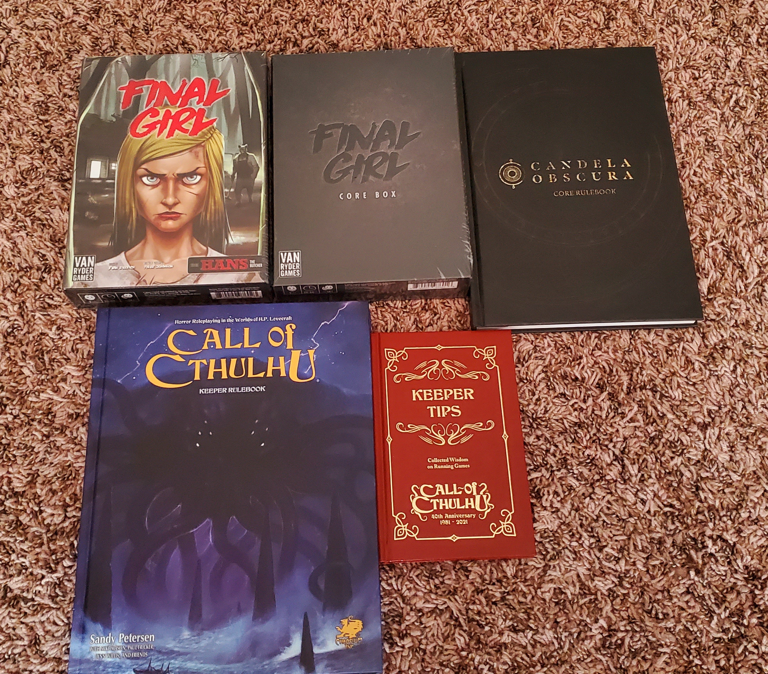 I will say that my haul for Gen Con is smaller than prior years. I was much more intentional with what I wanted to purchase and if that particular game or rule book would be something I would use in the future. I’m so excited to dive into Call of Cthulhu and Candela as I’d love to write a few one-shots to run my friends through.